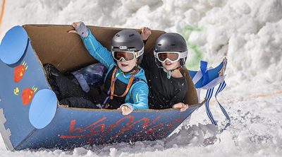 /wp:paragraphwp:paragraphMaybe the most fun a family can have together on a mountain is the Sipapu Cardboard Derby, back this year on Saturday, March 26, from 8 am-4 pm. Racers arrive with innovative vessels made with only cardboard, duct tape, string and paint and careen down the mountain for a chance to win amazing prizes. Need a little inspiration (or maybe just a laugh)? Check out this video!