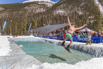 Red River brings the party. Their Closing Day celebration traditionally includes Sunday Savings and a crowd-favorite Pond Skim — costumes encouraged. If you want classic spring-ski send-off vibes, this is your stop.